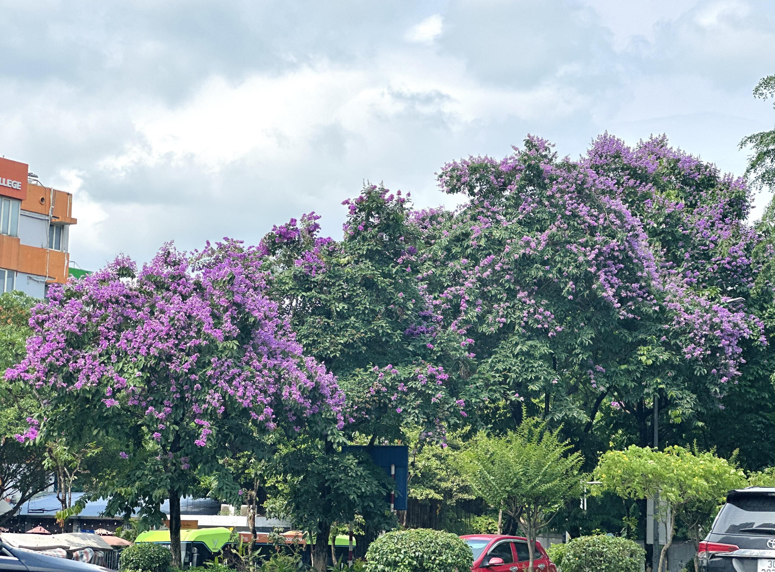 Hoa nở rộ nhuộm tím cả một góc phố