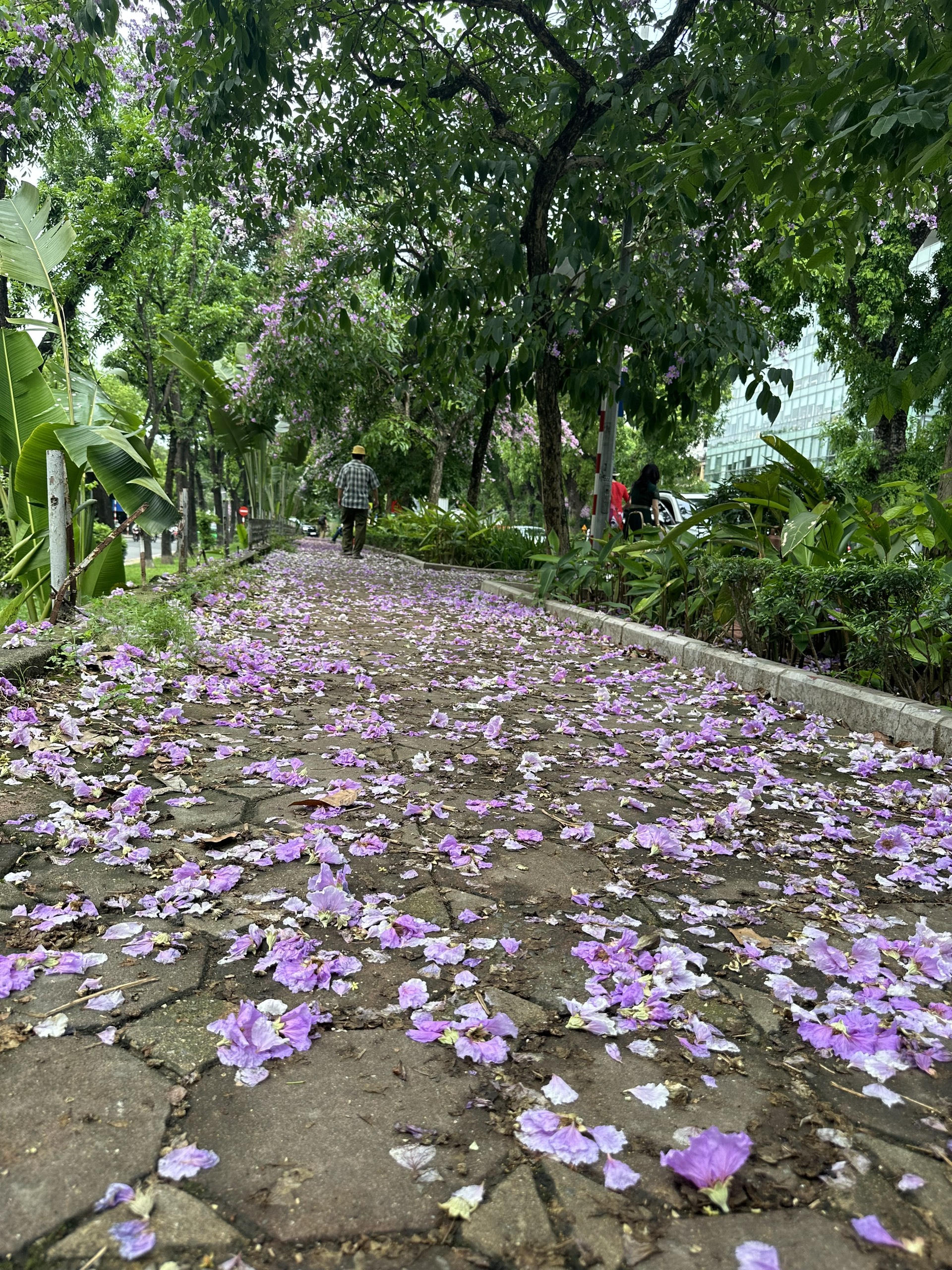 Hoa rụng phủ kín vỉa hè