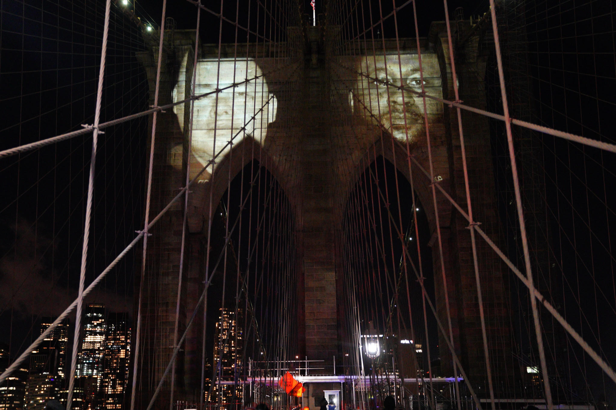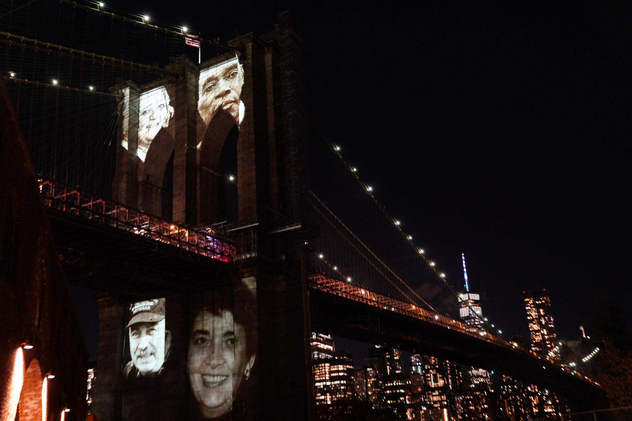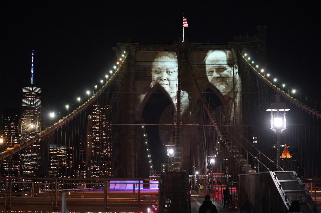 Trong Lễ tưởng niệm, nến được thắp sáng trên cầu Brooklyn - biểu tượng của thành phố. Những bức ảnh đen trắng khổ lớn chụp chân dung các nạn nhân tử vong do dịch COVID-19 được trình chiếu để tưởng niệm.