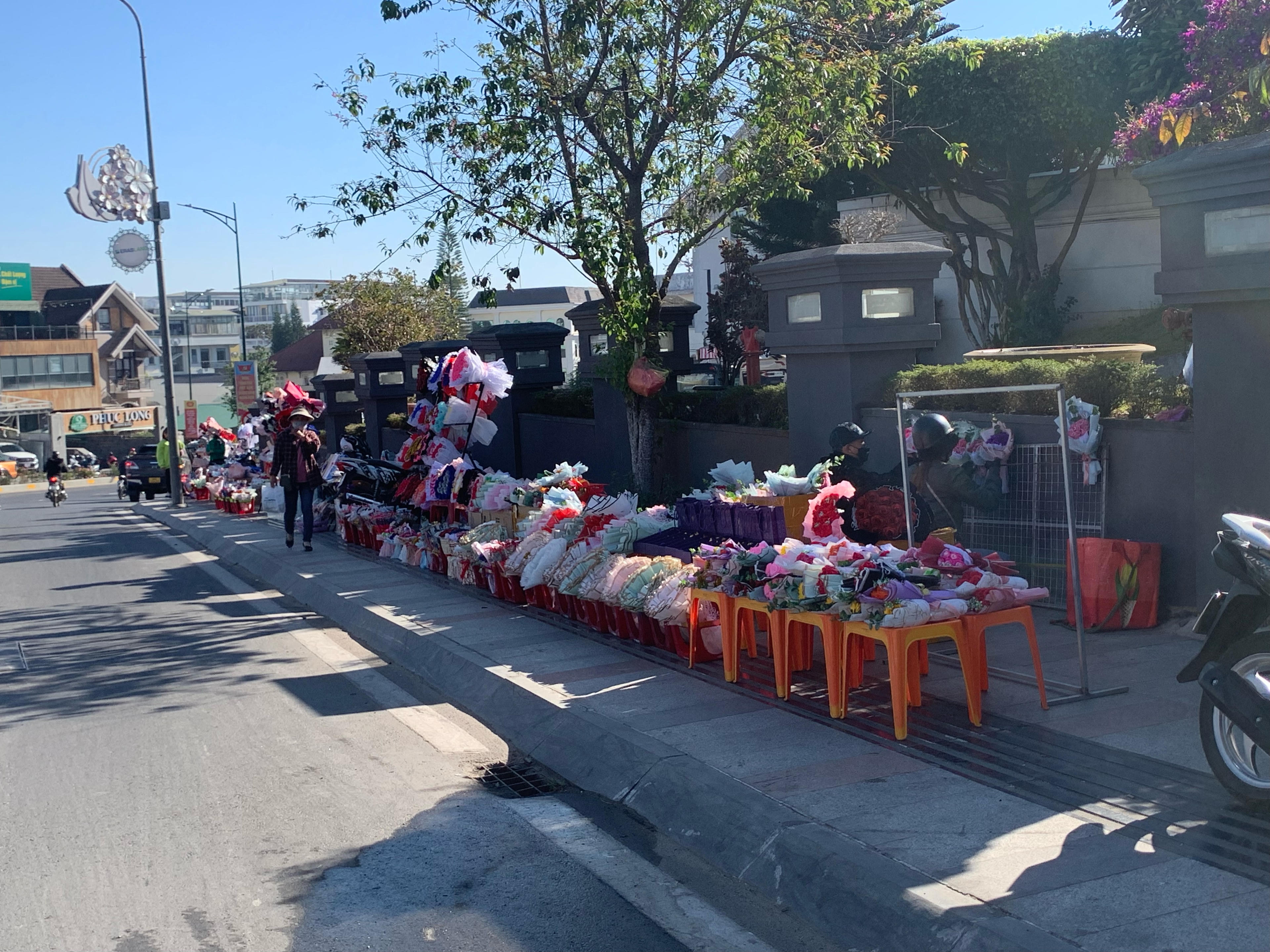 Nhiều ngả đường trung tâm TP Đà Lạt bày bán hoa dịp lễ 8/3. |