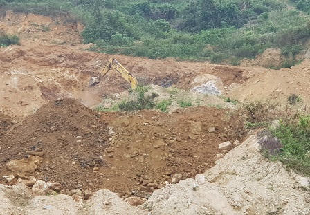 | Các loại máy móc của Công ty TNHH khoáng sản Thanh Sơn Phú Thọ vẫn ngang nhiên đào bới để "móc" khoáng sản. |