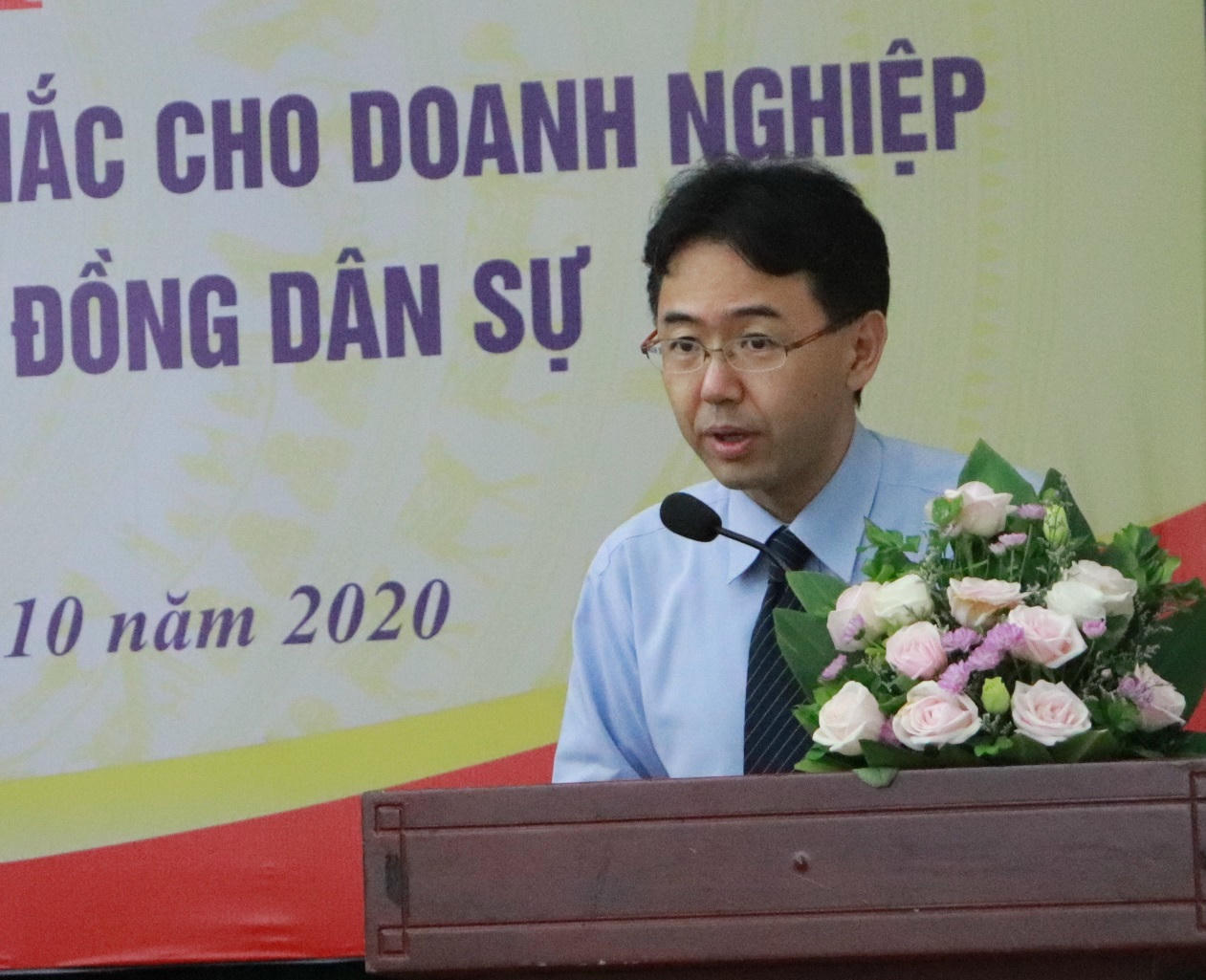 Phát biểu khai mạc, ông Nguyễn Thanh Tú cho biết pháp luật điều chỉnh quan hệ hợp đồng trong đời sống xã hội thuộc các lĩnh vực có số lượng tương đối đồ sộ. Việc hiểu và áp dụng trong hoạt động sản xuất kinh doanh của doanh nghiệp không hề đơn giản, đòi hỏi các doanh nghiệp tìm hiểu kỹ quy định cơ bản của pháp luật, quyền và nghĩa vụ của mình trong các giao dịch hợp đồng. Doanh nghiệp cần lưu ý những quy định có thể xảy ra những rủi ro trong quá trình xác lập, thực hiện hợp đồng.