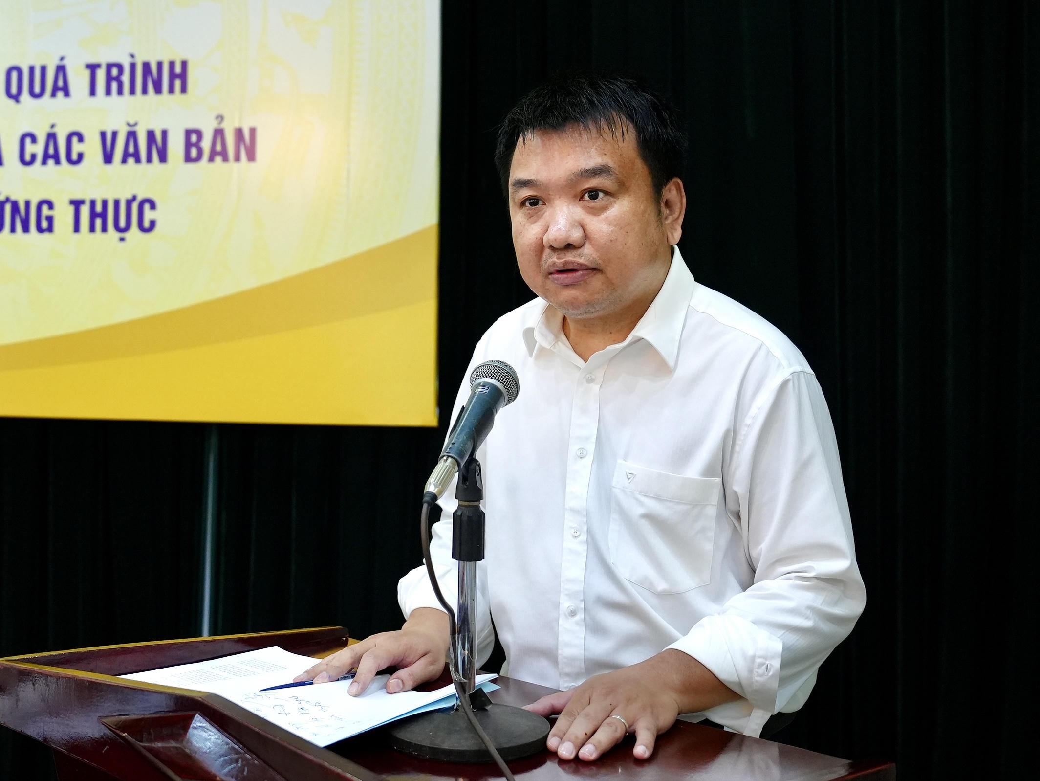 Phát biểu khai mạc, Phó Cục trưởng Nguyễn Tấn Cường cho biết, tọa đàm tập trung vào hai nội dung chính. Thứ nhất là hướng dẫn triển khai Hệ thống thông tin giải quyết thủ tục hành chính dùng chung của Bộ Tư pháp trong lĩnh vực chứng thực. Đây là hệ thống do Cục Công nghệ thông tin chủ trì xây dựng, tích hợp nhiều thủ tục hành chính, trong đó lĩnh vực chứng thực được lựa chọn triển khai trước, gắn trực tiếp với hoạt động của đội ngũ cán bộ tư pháp cấp xã.