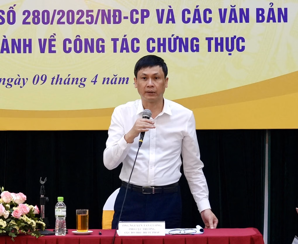 (PLVN) - Ngày 9/4, Cục Bổ trợ Tư pháp tổ chức Toạ đàm tháo gỡ khó khăn vướng mắc trong quá trình triển khai Nghị định 280/2025/NĐ-CP và các văn bản hướng dẫn thi hành về công tác chứng thực dưới sự chủ trì của Phó Cục trưởng Cục Bổ trợ tư pháp Nguyễn Tấn Cường chủ trì Tọa đàm.