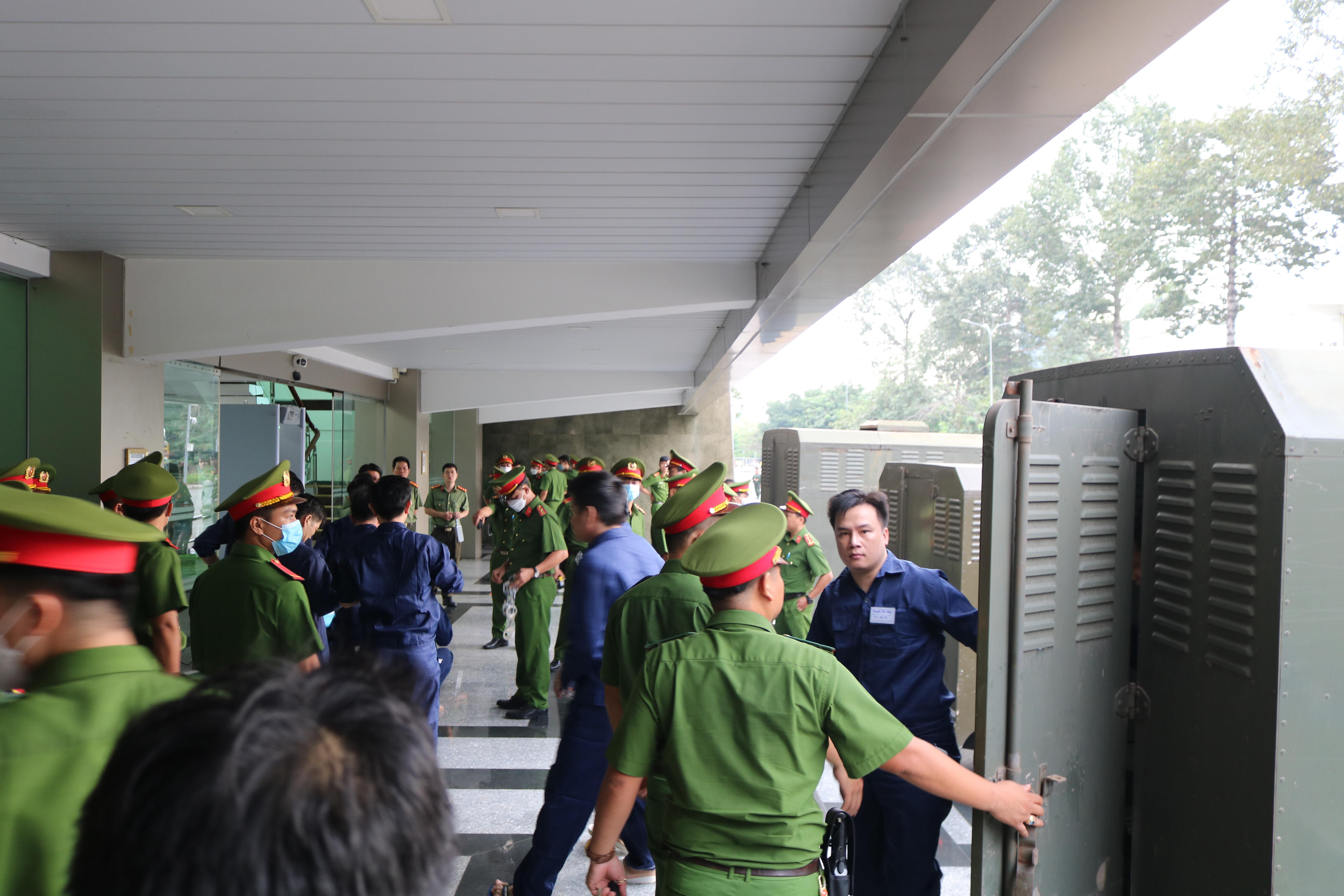 Ngay từ cổng chính, những người tham dự phiên tòa sẽ được lực lượng Công an kiểm tra kĩ càng. Sau đó tại Hội trường nơi diễn ra phiên tòa, những người tham gia đều phải xuất trình giấy tờ liên quan, lực lượng chức năng sẽ kiểm tra tư trang, túi xách, điện thoại trước khi bước qua cửa từ. Để chắc chắn, có thêm bộ phận sử dụng máy dò bằng tay quét một lượt toàn thân.