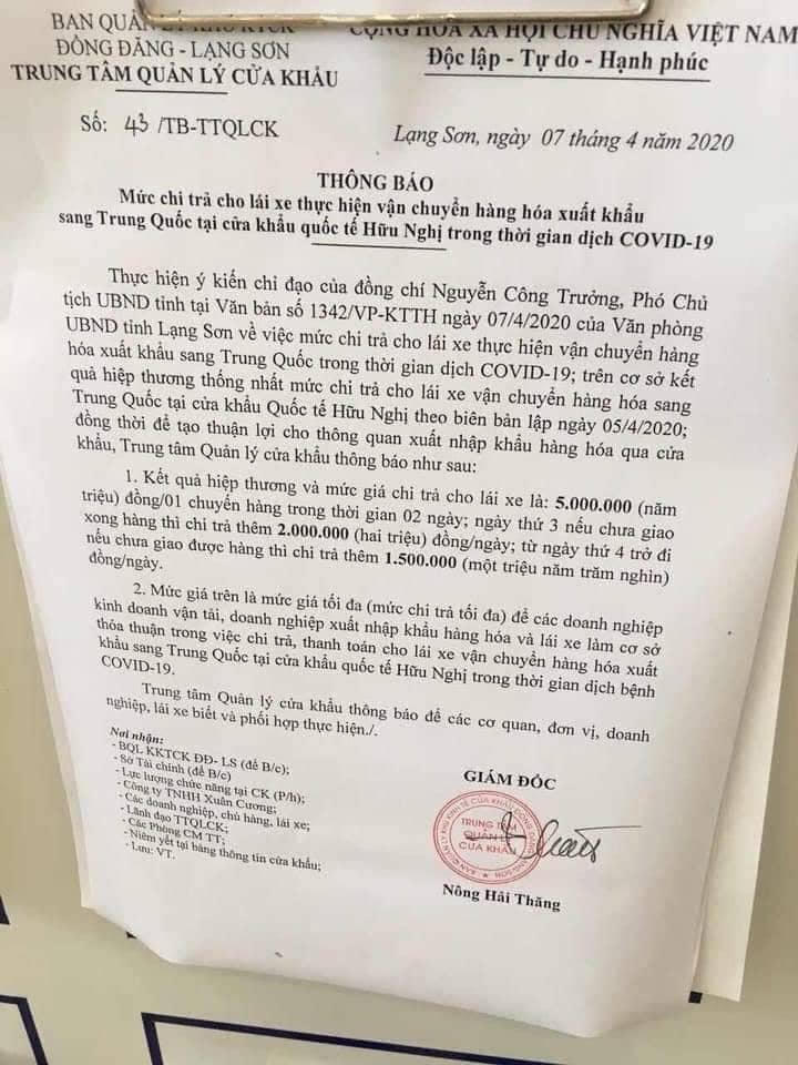Vị đại diện này thông tin, mức giá này không phải là giá mà cơ quan nhà nước đưa ra. Mức giá trần này đưa ra dựa trên cơ sở kết quả của việc khảo sát địa phương, giữa các lực lượng cửa khẩu, một số doanh nghiệp và lái xe ở khu cửa khẩu. Mức giá này cũng đã được các cơ quan ban ngành Lạng Sơn thẩm định sau đó mới đưa ra mức giá trong thông báo của BQL KKT Cửa khẩu.