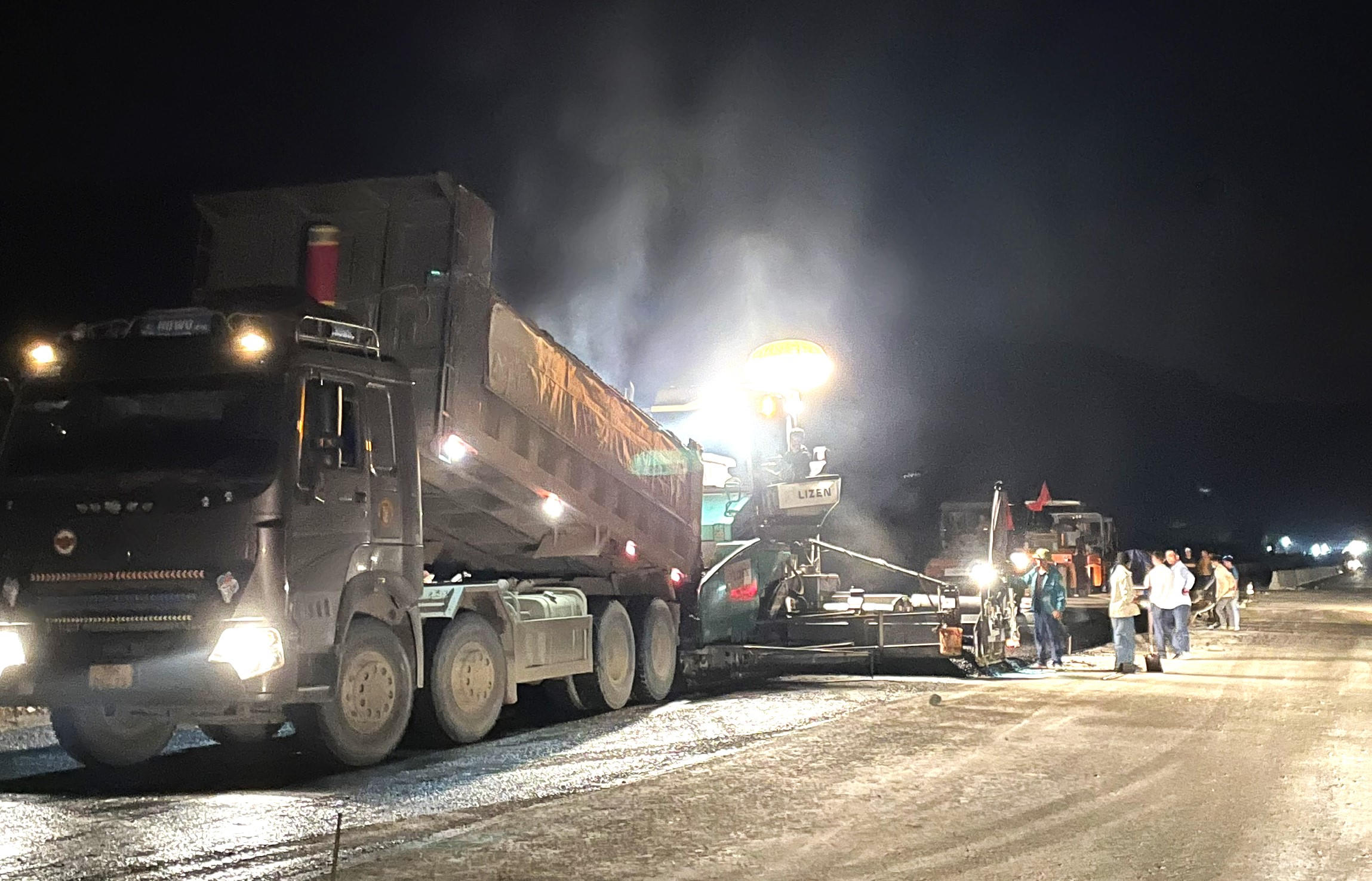 PMU2 đã chỉ đạo các nhà thầu huy động hàng trăm thiết bị xe máy, vật liệu xây dựng và 4 trạm trộn bê tông nhựa công suất lớn để rải thảm suốt ngày, đêm. “Nếu thời tiết ổn định, không mưa thì việc thảm mặt đường sẽ thuận lợi. Tính đến chiều 21/8/2023, việc thảm lớp bê tông nhựa C19 đạt 80%, lớp C16 trên 62%”, Giám đốc PMU2 nói.