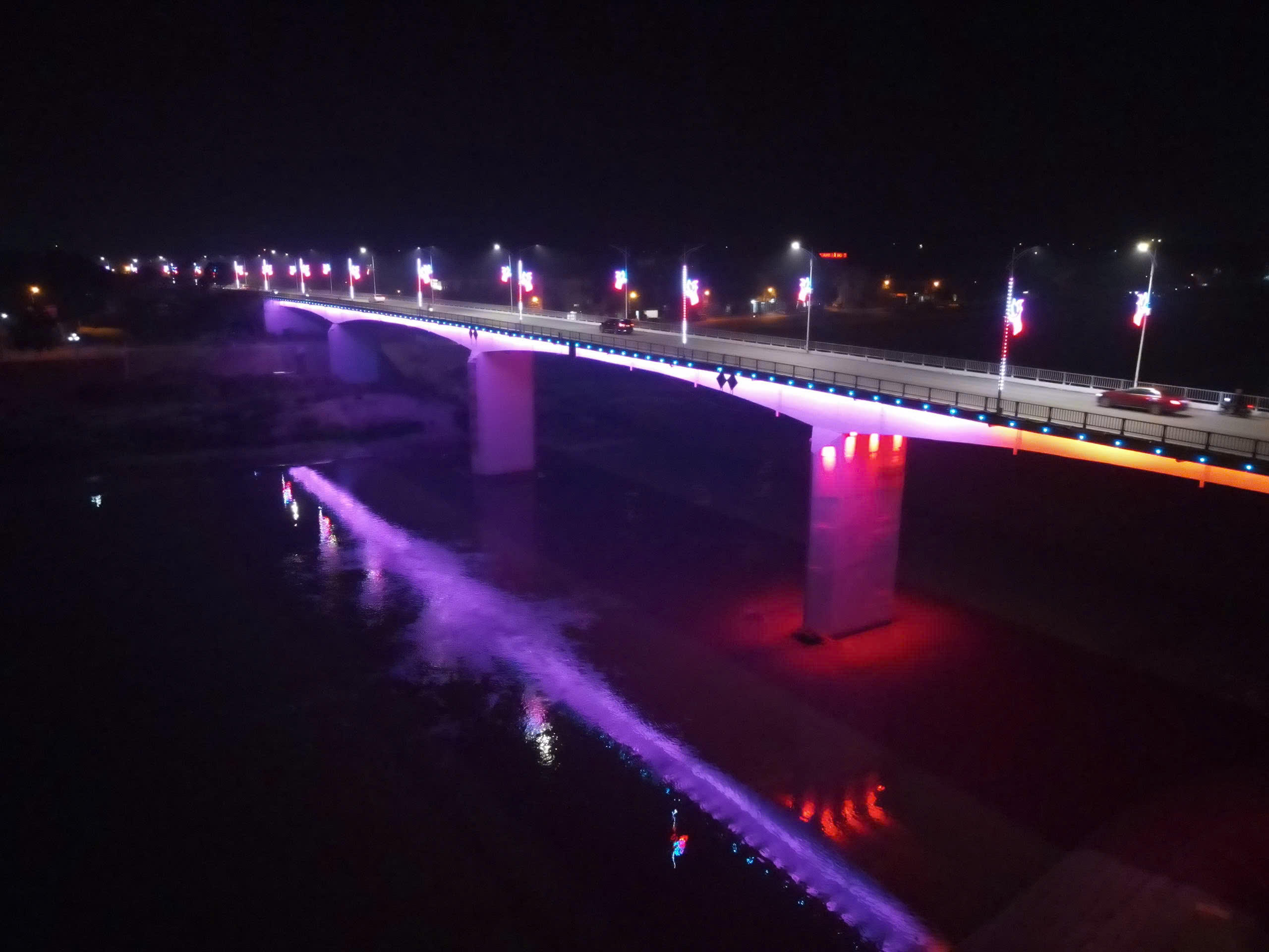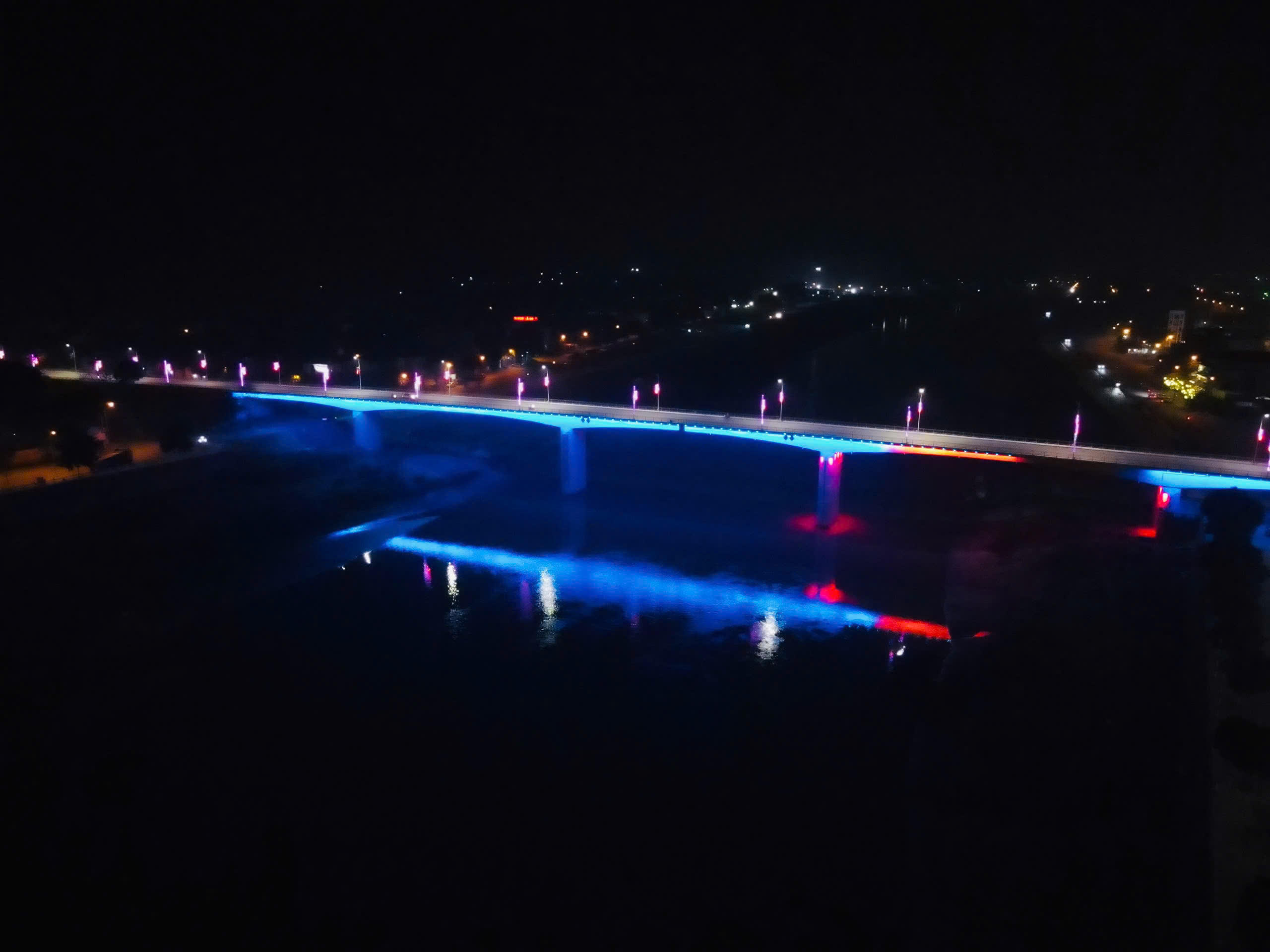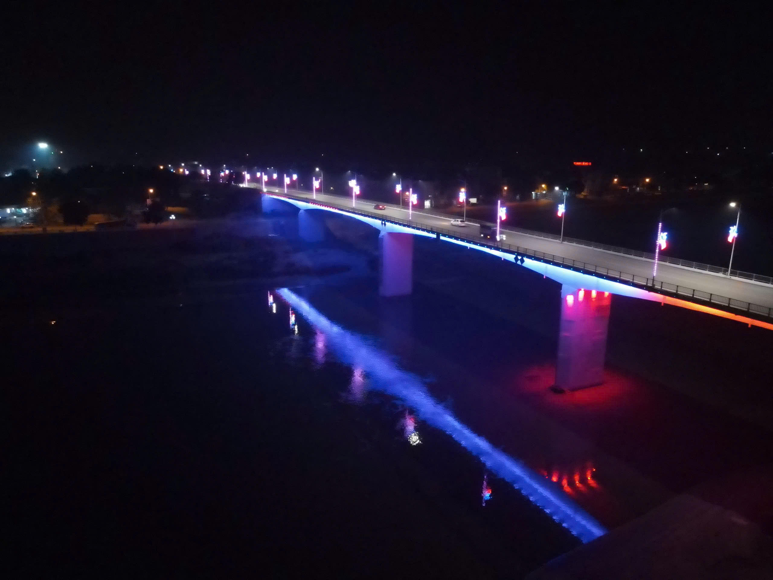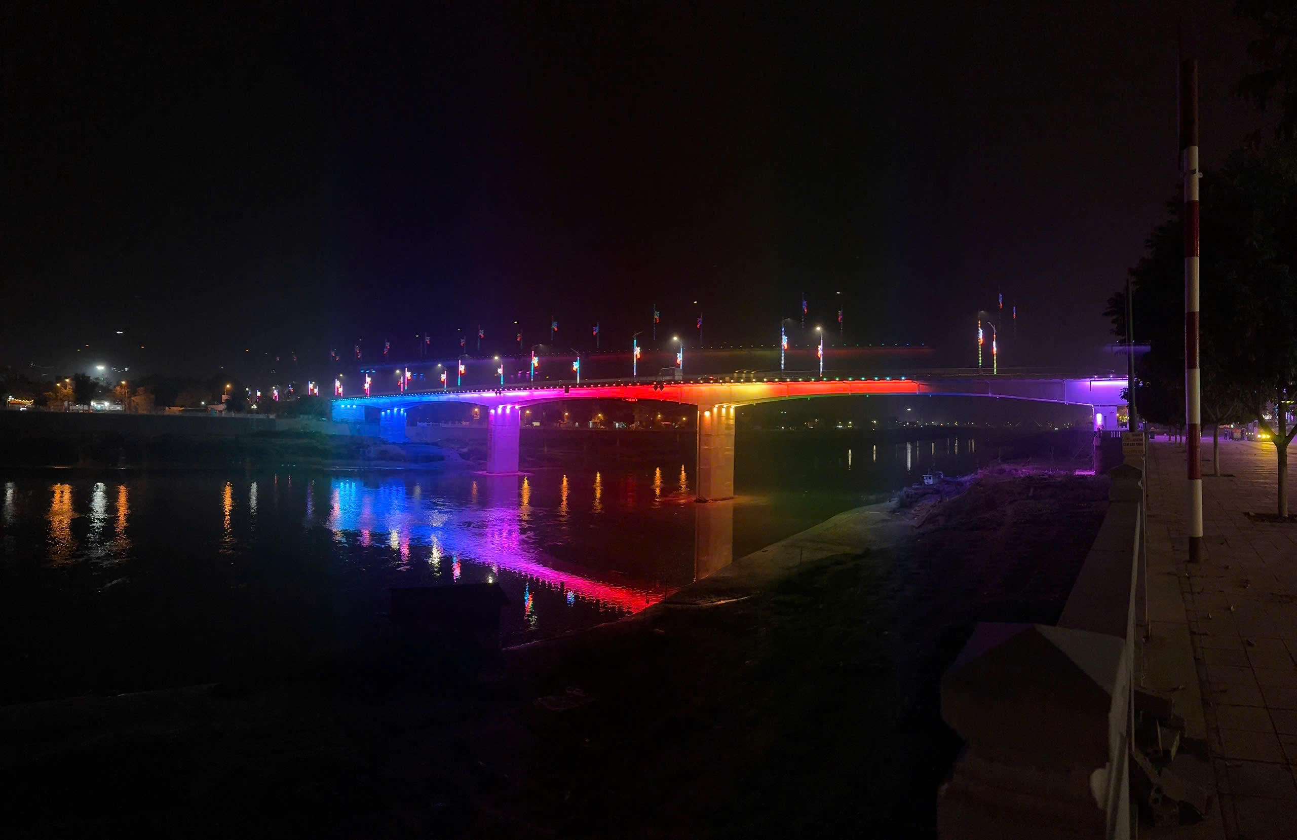 Hệ thống chiếu sáng trang trí sử dụng đèn LED công suất 150W chiếu hắt trụ cầu, đèn led điểm 9W chạy dọc thành cầu, đèn LED dây lắp trên cột đèn đường, đèn LED 100W chiếu sáng dầm cầu |