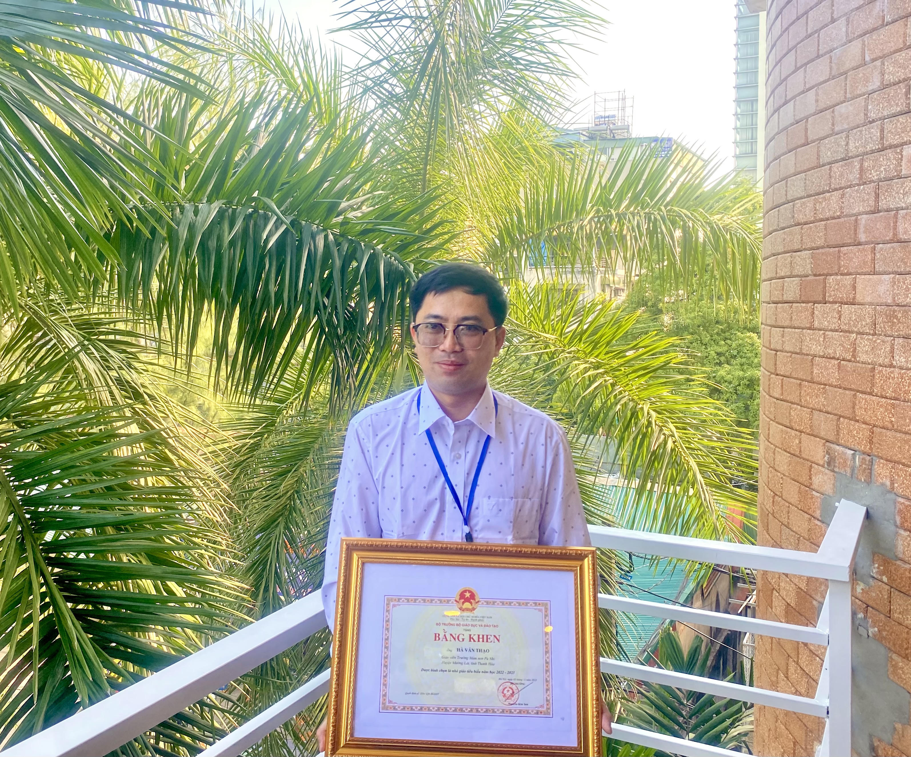 Thầy Hà Văn Thạo được Bộ trưởng Nguyễn Kim Sơn khen với loạt thành tích như vận động trẻ tham gia đi học theo đúng yêu cầu nhà trường đề ra; sáng kiến Kinh nghiệm năm 2019 đạt loại C; sáng kiến kinh nghiệm năm 2022 đạt loại A; năm 2020 - 2021, thầy đạt danh hiệu giáo viên dạy giỏi cấp tỉnh. Năm 2021, thầy được Chủ tịch Liên đoàn Lao động tỉnh Thanh Hóa tặng Bằng khen về “có sáng kiến tiêu biểu tham gia chương trình 75 nghìn sáng kiến vượt khó, phát triển” và năm nay (2023) đạt danh hiệu Chiến sĩ thi đua cấp cơ sở.