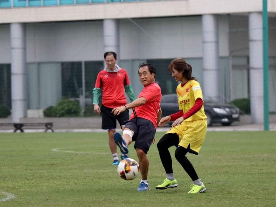Thầy Park đá bóng với chị em chúc mừng ngày Thể thao Việt Nam
