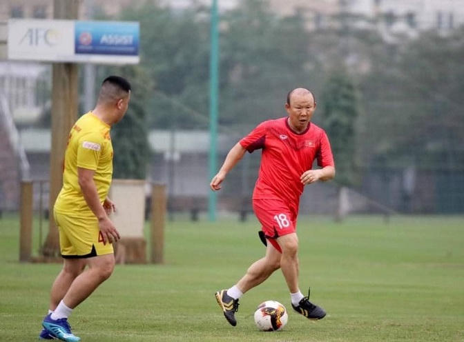 Trận đấu cũng là cơ hội tạo môi trường giao lưu gặp gỡ, chia sẻ, tăng cường mối quan hệ phối hợp công tác giữa HLV Park Hang-seo và các cộng sự với các bộ phận chức năng của VFF.