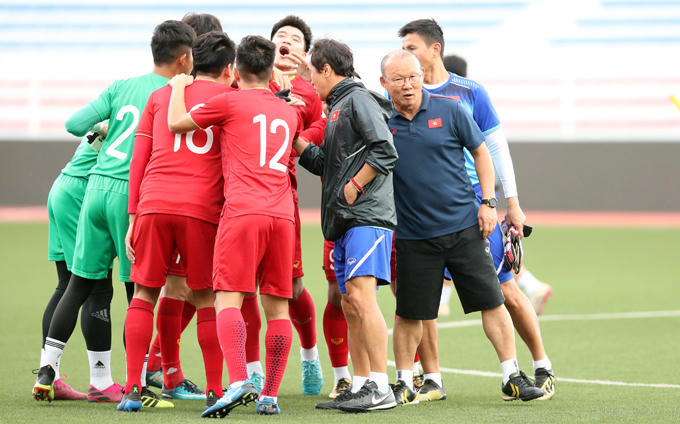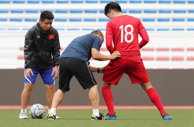 Do thiếu cầu thủ, trợ lý Lee Young-jin và trợ lý ngôn ngữ Lê Huy Khoa cùng vào tập với các học trò. Ban đầu, HLV Park chỉ định cho truyền thông tác nghiệp 15 phút rồi tập kín. |