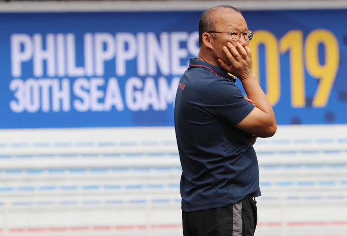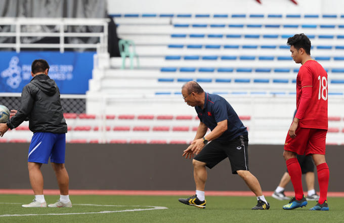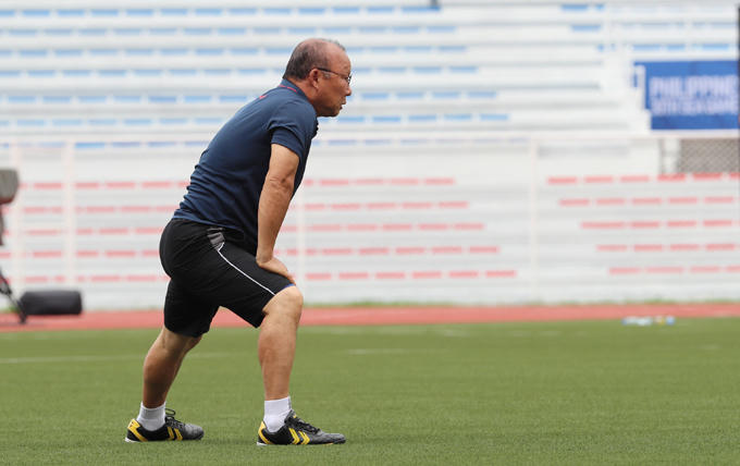 Nhà cầm quân Park Hang-seo lúc tươi cười, tăng động, lúc trầm ngâm trong buổi tập cùng U22 Việt Nam sáng 29/11 trên sân Rizal Memorial.