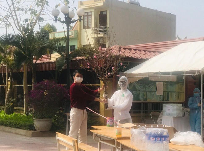 Chiều 5/1, anh Nguyễn Duy Long, một trong những phụ huynh đang thực hiện cách ly cùng con tại trường THCS Sao Đỏ (TP Chí Linh, Hải Dương), đã kịp đặt một cành đào đến khu cách ly. Tết năm nay, bố con anh có thể sẽ không được về nhà nhưng hương vị Tết cổ truyền vẫn không thể thiếu, dù ở trong khu cách ly.