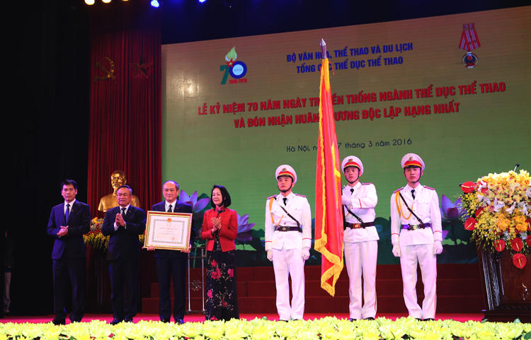 (PLO) - Sáng nay, 27/3, Lễ kỷ niệm 70 năm Ngày truyền thống ngành thể dục thể thao (27/3/1946 -27/3/2016) và đón nhận Huân chương Độc lập hạng Nhất đã được Bộ Văn hoá, Thể thao và Du lịch (VHTT&DL) tổ chức tại Hà Nội
