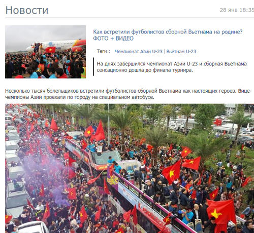 Trang tin thể thao Uzbekistan, championat.asia, đã giật hàng tít "Người Việt Nam đã chào đón các tuyển thủ của họ như thế nào?". Theo đó, trang này miêu tả "hàng nghìn người hâm mộ ở Việt Nam đã chào đón các tuyển thủ U23 như những người anh hùng. Á quân của châu Á đã diễu hành khắp phố trên chiếc xe bus dành riêng cho họ".