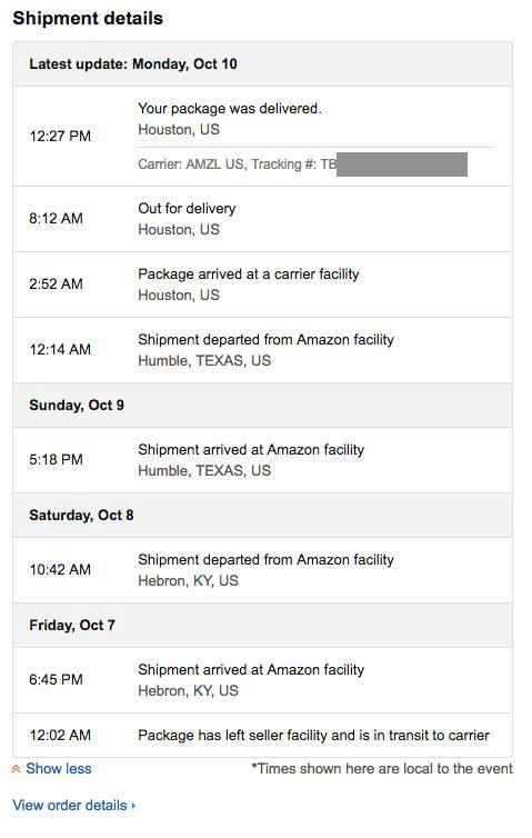 Mới đây, trên mạng xã hội chia sẻ hình ảnh một đơn hàng của một khách hàng Việt Nam đặt mua một số sản phẩm âm nhạc trên website bán hàng của Amazon. Đơn hàng được khởi tạo từ ngày 11/10 nhưng trước đó 4 ngày (tức là ngày 7/10), trên hệ thống của Amazon đã có thông báo về việc đã chuẩn bị hàng và hàng đã được chuyển đi từ kho.