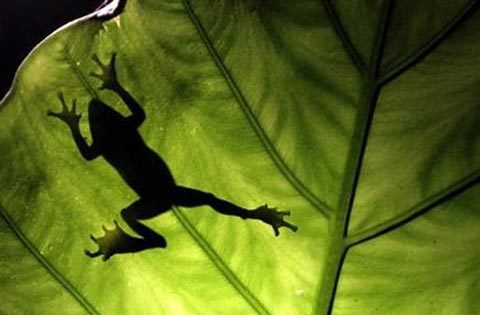 | Ảnh chụp một con ếch cây Đài Bắc đang leo trên một chiếc lá tháng 7/2010. Ảnh: Reuters. |