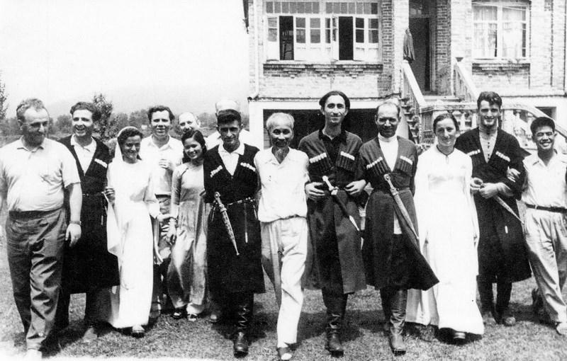 Chủ tịch Hồ Chí Minh hòa nhịp cùng các thanh niên Kazakhstan trong vũ điệu dân tộc, tháng 7 năm 1959. (ảnh: tư liệu) |