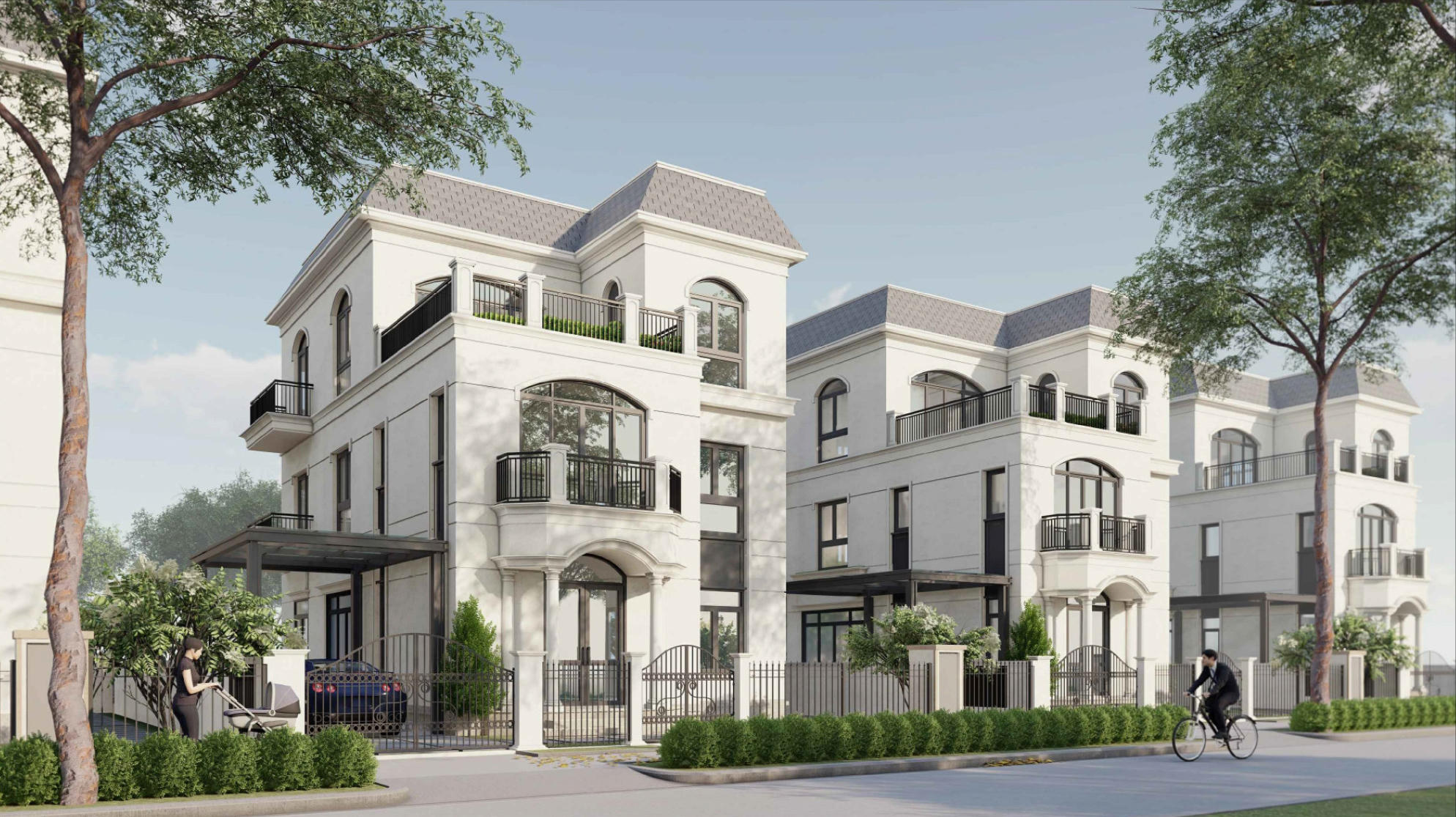 Mỗi ngôi biệt thự đều có 2 tầng lầu với phần mái được thiết kế dốc, lối vào rộng thoáng khá ấn tượng. Không gian sinh hoạt trong nhà được bố trí hợp lý, thông thoáng để ánh sáng và gió trời có thể “thoải mái” lan tỏa theo mọi hướng. Phòng khách, phòng ăn và bếp liên thông tạo không gian liên hoàn, đa năng trong việc sử dụng, vô cùng thuận tiện để chủ sở hữu thiết kế nội thất theo sở thích riêng.