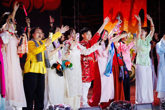 Hàng ngàn bạn trẻ khoác lên mình trang phục truyền thống Việt Nam tại concert “Anh trai vượt ngàn chông gai”. (Ảnh: ATVNCG) |