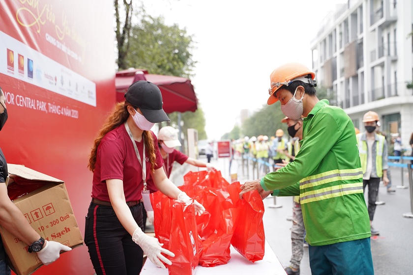 Trong ngày 22/4, hàng nghìn phần quà đã được trao tặng trực tiếp đến toàn bộ công nhân đang làm việc tại dự án The Manor Central Park (Nguyễn Xiển – Hà Nội) cũng như những người dân có hoàn cảnh khó khăn trong khu vực thông qua Mặt trận Tổ quốc và UBND phường.