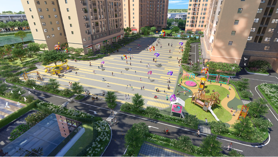Đối với con trẻ có thể vui chơi thoả thích tại bể bơi nội khu, quảng trường rộng gần 10.000 m2 hay khu phát triển thể chất dành riêng cho trẻ em. Đối với thế hệ người cao tuổi có thể thư giãn ở các khu vườn chủ đề nội khu để đánh cờ, hay rèn luyện sức khoẻ tại các máy tập ngoài trời. Đặc biệt, để thuận tiện cho các gia đình sinh hoạt, dự án gồm 1 dãy các căn hộ vừa để ở vừa kết hợp kinh doanh, trong tương lai sẽ được phát triển thành các cửa hàng dịch vụ như siêu thị, tạp hoá, spa... Trường mầm non và thư viện giúp được xây dụng trong khuôn viên dự án nhằm nhằm tiết kiệm thời gian đưa đón con trẻ.