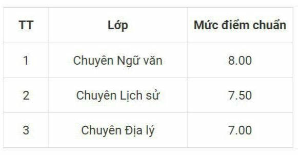 Điểm chuẩn cụ thể của từng lớp chuyên như sau: