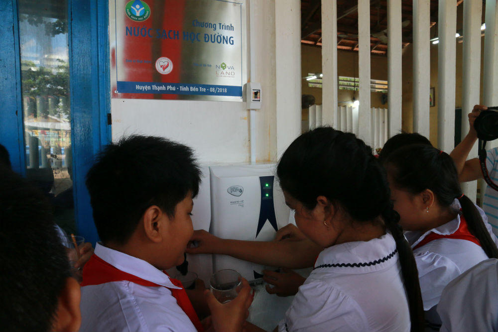 (PLO) - Ngày 29/08/2018, Hội Bảo trợ Bệnh nhân nghèo TP.HCM và Tập đoàn Novaland vừa bàn giao 347 máy lọc nước và 334 bồn chứa nước, với tổng trị giá hơn 3.8 tỷ đồng đến 52 trường trên địa bàn huyện Thạnh Phú, tỉnh Bến Tre; mang đến nguồn nước sạch uống trực tiếp cho khoảng 20.000 học sinh và giáo viên trước thềm năm học mới.