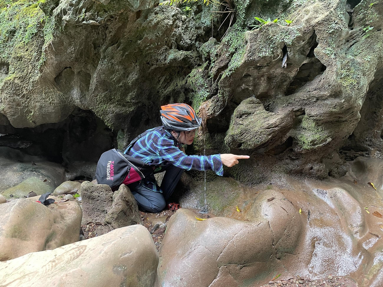 Đường đi bộ vào Hang Sơn Nữ dọc hai bên suối với những phiến đá tai mèo còn nguyên sơ. |