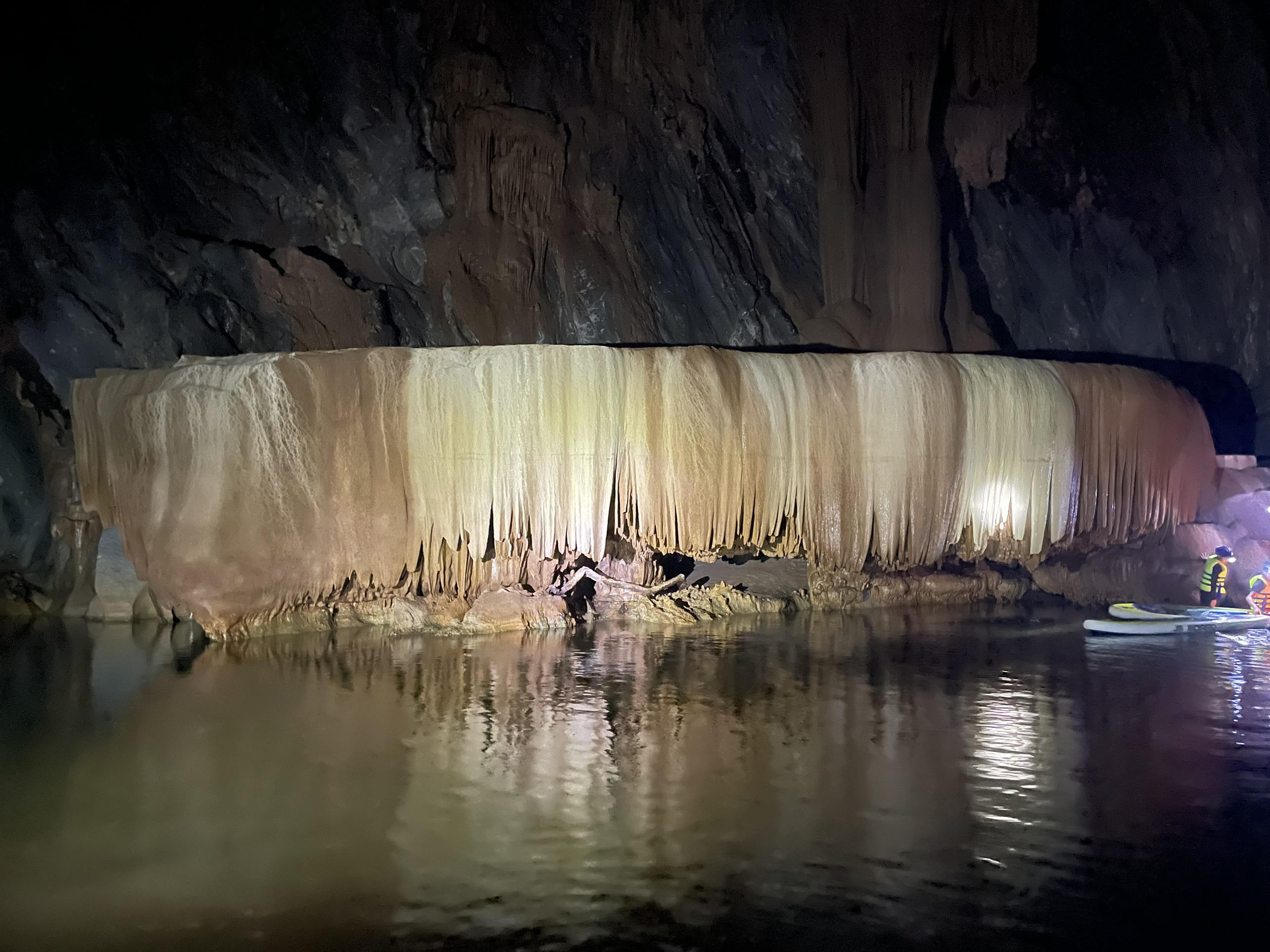 Trong hang có nhiều khối thạch nhũ rất đẹp. |