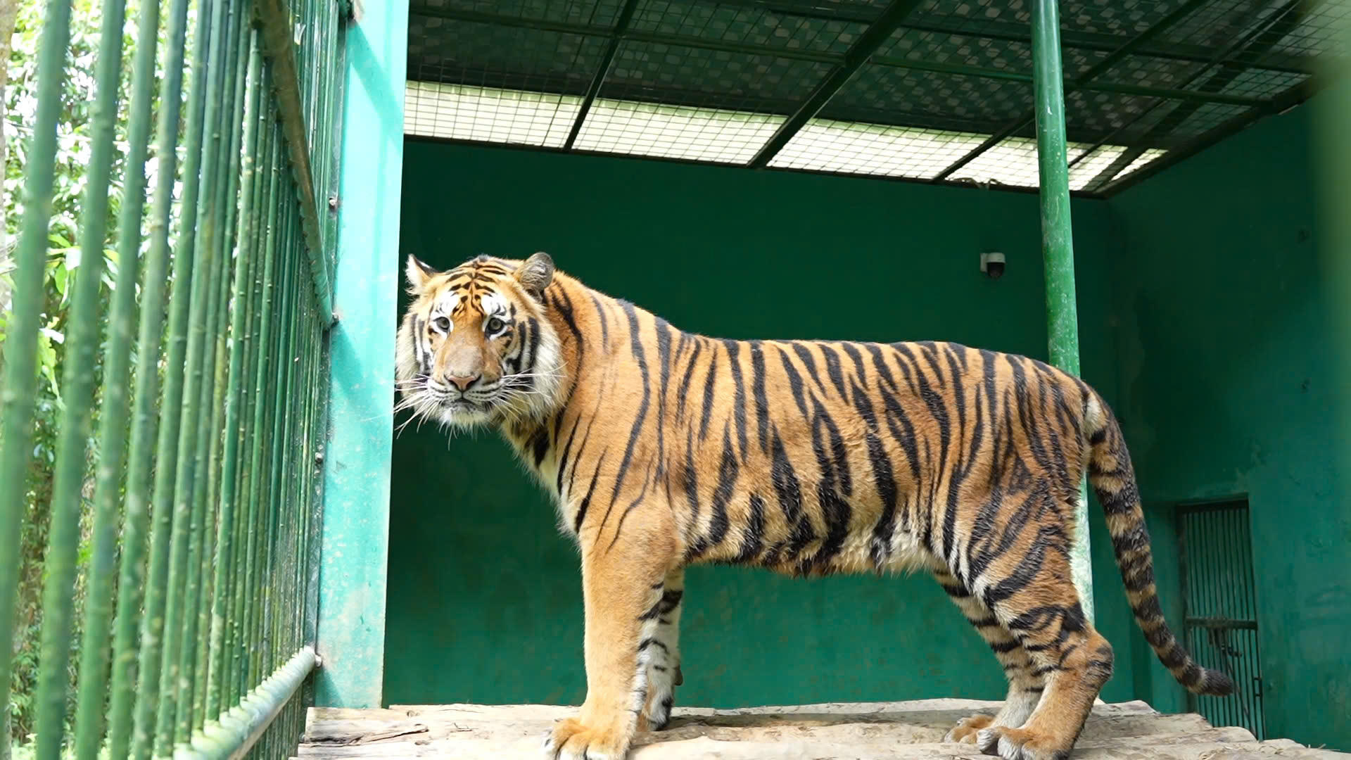 Tại đây, hổ được nuôi ở các chuồng riêng biệt rộng 26m2, xây kiên cố và có lớp tôn cách nhiệt, nền đất tự nhiên và bê tông kết hợp, cùng bể nước tắm và kệ nằm đảm bảo môi trường sống phù hợp cho động vật hoang dã quý hiếm cần được bảo vệ này.