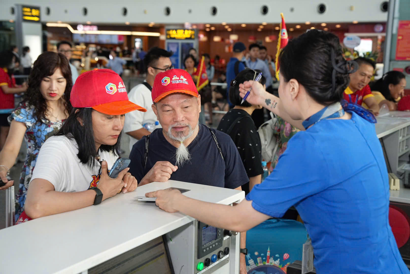 Những hành khách đầu tiên trên chuyến bay từ Quý Dương làm thủ tục |