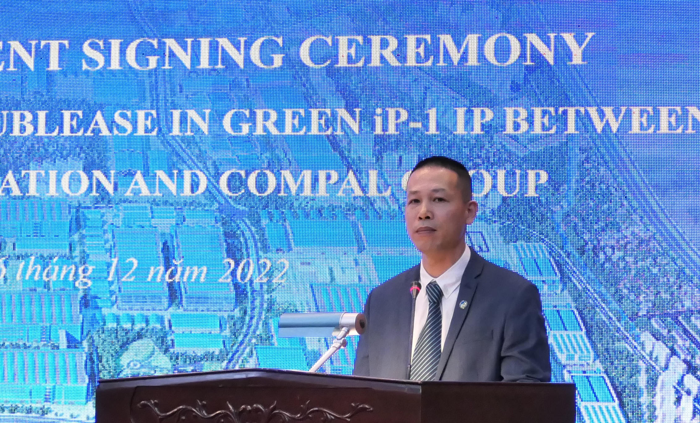 Tại KCN Green iP-1, Công ty TNHH Compal Electronics sẽ thuê 40ha đất để xây dựng nhà xưởng, với tổng vốn đầu tư 260 triệu USD.