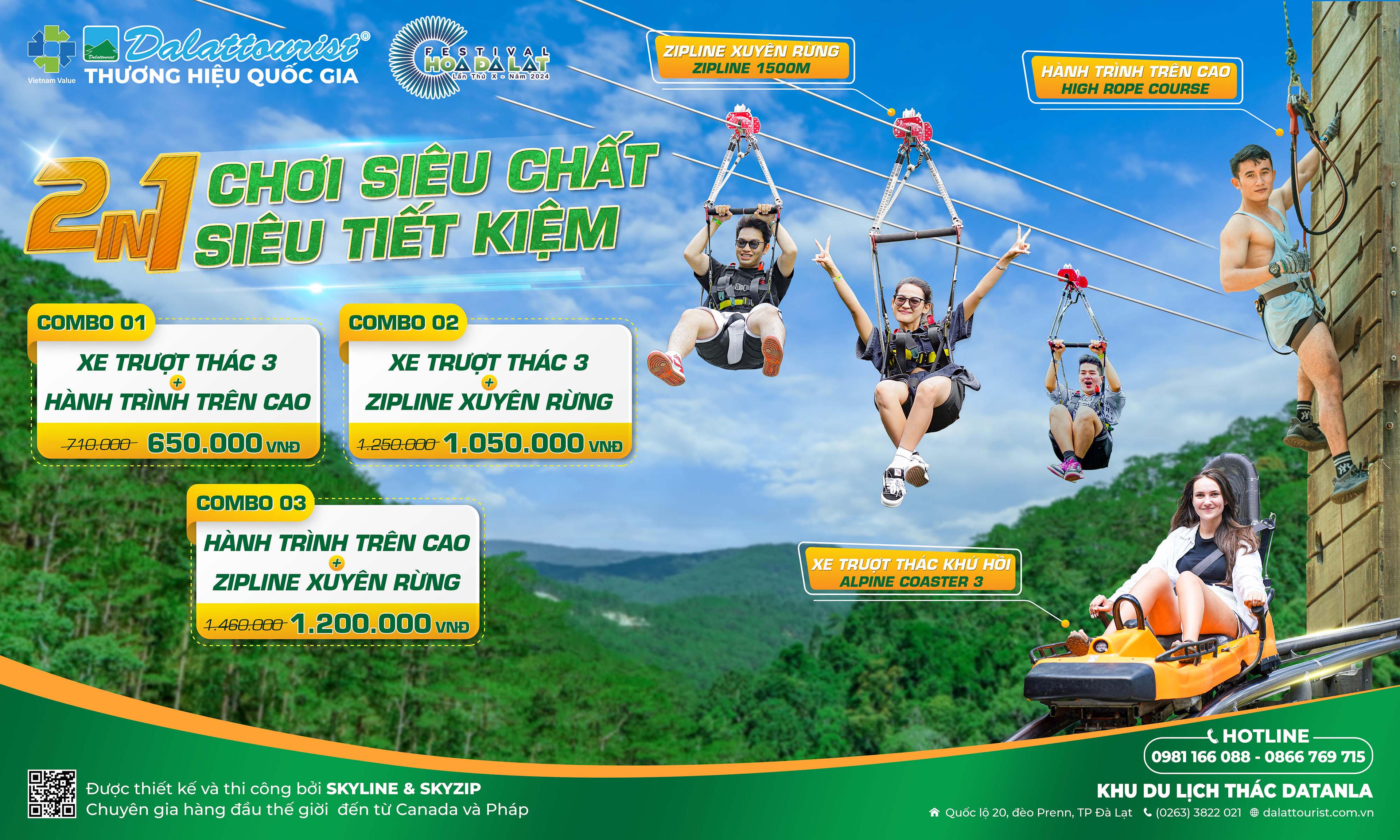 Xe trượt 3 + Zipline từ 1.250.000vnđ giảm còn 1.050.000vnđ