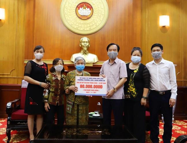 Hưởng ứng lời kêu gọi của Thủ tướng cụ bà Phạm Thị Kính (80 tuổi), người phụ trách Tổ cháo từ thiện Đình Kim Liên, Phường Phương Liên, quận Đống Đa, TP Hà Nội lần thứ hai quay trở lại Mặt trận để trực tiếp trao số tiền 80 triệu đồng ủng hộ cho Quỹ Vaccine phòng COVID-19. Trong năm 2020, Tổ cháo từ thiện đình Kim Liên, quận Đống Đa đã ủng hộ hơn 60 triệu đồng cho công tác phòng chống dịch COVID-19.