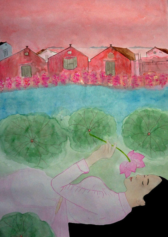 Phía kia là mặt hồ lờ nhờ sương cuối chiều. Cô chỉ cần nhảy xuống đó là làm xong việc mà tâm trí xúi giục. Từ chỗ ngồi này ra mặt hồ chỉ hai mươi bước chân chứ mấy. Nhưng ngộ nhỡ ai đó nhìn thấy, nhảy xuống cứu thì coi như… hỏng. Cô tự nhủ phải chờ thêm. Mắt cô lia sang trái, bắt gặp một người đàn ông đang tỉ mỉ vẽ tranh. Hân dụi mắt để nhìn cho rõ hơn. Bức tranh có màu vàng chủ đạo. Chưa bao giờ cô thấy một bức tranh mà màu vàng lại óng ánh đến thế. Người đàn ông hình như bị cụt một bàn tay. Cô cố nhìn kỹ và tự khẳng định với mình. Một họa sĩ cụt tay vẽ rong. Cô bỗng quên việc chính. Bên tay cụt của ông họa sĩ thu hút ánh nhìn của Hân. Một điều gì đó níu cô tiến lại gần. Bây giờ bức tranh không còn vàng chóe như lúc ngồi nhìn xa, mặt tranh trầm hơn. Cô biết, ông đang vẽ một vườn trăng. Ánh trăng tràn lên, nhuộm cả khu vườn, làm nó trở nên đặc một màu hy vọng. Dường như đoán được tâm trạng của cô gái, ông họa sĩ quay sang: “Có tâm sự gì sao, cô gái?”. “Bác vẽ đẹp quá”. Hân không trả lời ông, mà nhấn vào bức tranh. Ông họa sĩ cũng không đòi cô gái lạ phải trả lời. “Bác sẽ bằng sự hồ hởi và tình yêu với thiên nhiên”.