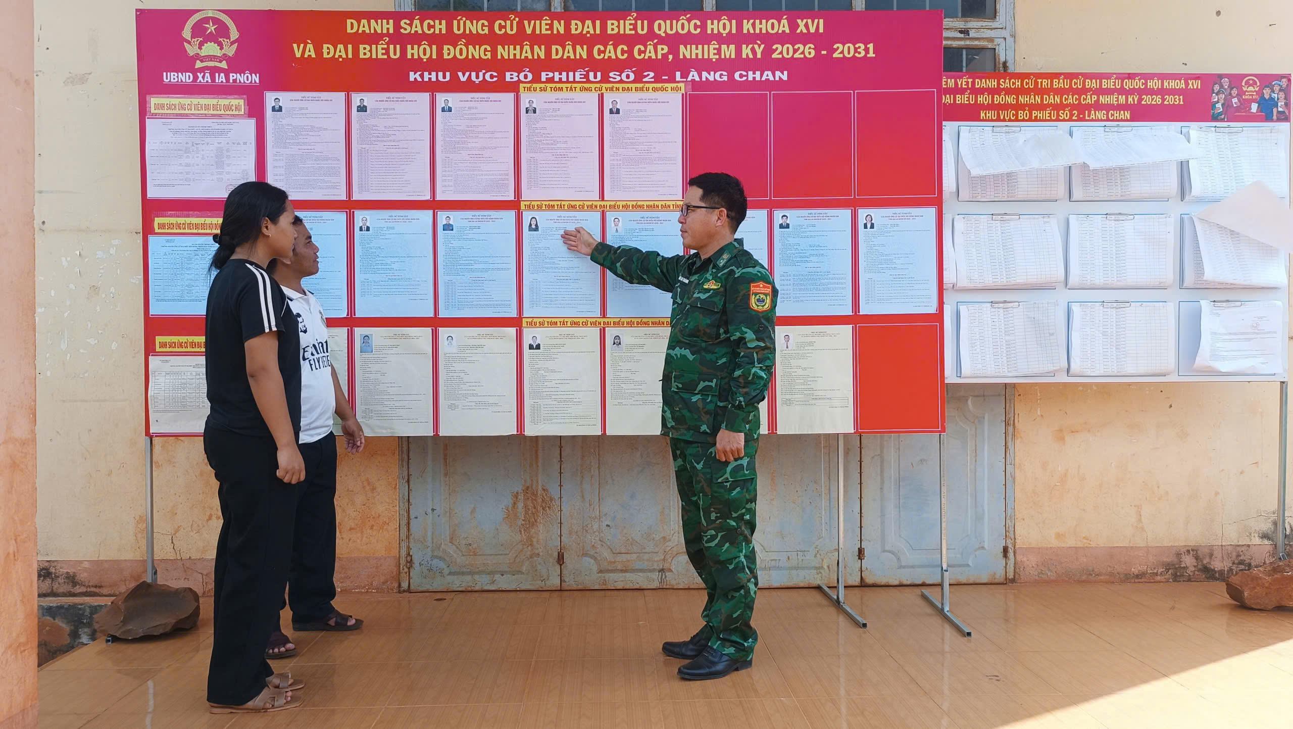 Tại Đồn Biên phòng Ia Pnôn, bên cạnh tuyên truyền về ngày bầu cử, cán bộ đơn vị còn trực tiếp hướng dẫn người dân theo dõi danh sách ứng cử viên, danh sách cử tri được niêm yết công khai tại khu vực bỏ phiếu. Hoạt động này góp phần giúp cử tri dễ tiếp cận thông tin, kịp thời phản ánh, đối chiếu khi cần thiết, đồng thời củng cố niềm tin của nhân dân vào công tác chuẩn bị bầu cử tại cơ sở.