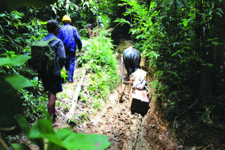 Tiếp xúc với một số dân kéo chuyên nghiệp, đang kéo gỗ trên đoạn đường này, chúng tôi được biết một cỗ trâu kéo nặng nhất lên đến 4 tạ. Với 20 trâu kéo thì mỗi ngày, một đoàn có thể đưa ra khỏi rừng gần 8 tấn gỗ. 15 đoàn như vậy thì mỗi ngày rừng Thù Lù bị xẻ biết bao nhiêu? Vậy là những kẻ phá rừng nơi đây rất lộng hành, “lâm tặc” vẫn ngày đêm rục rịch “làm thịt” rừng, chẳng lẽ chính quyền sở tại không biết?