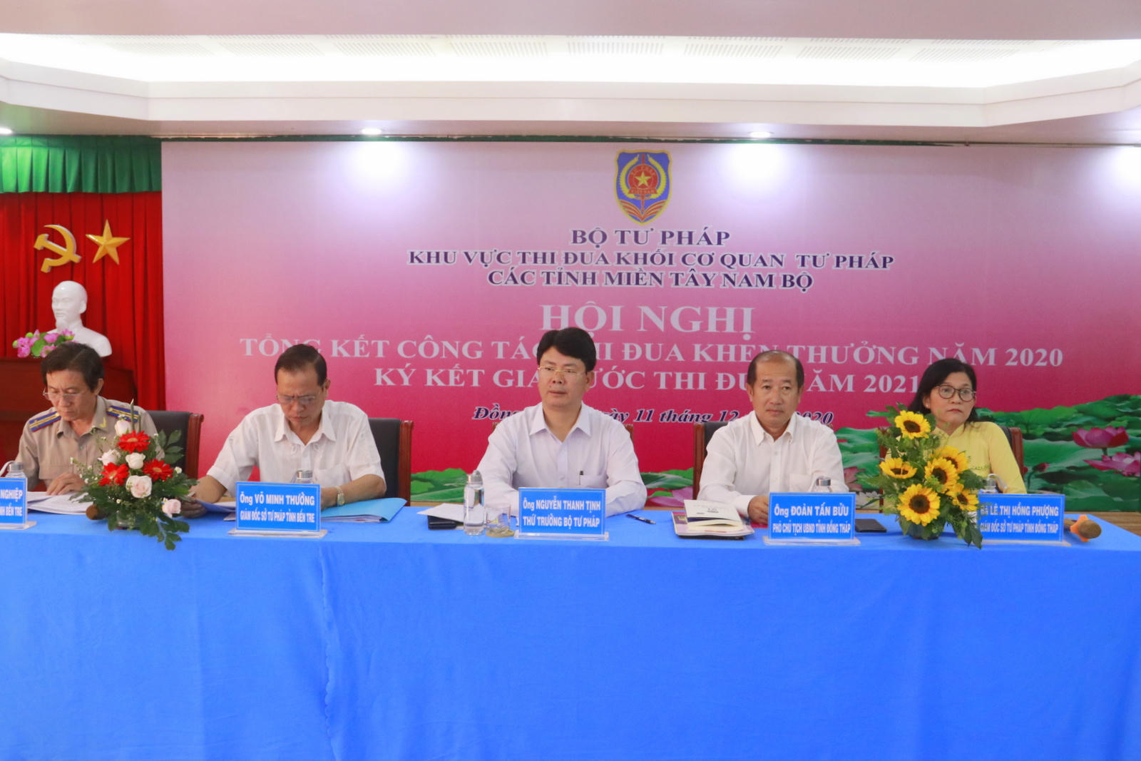 Tại hội nghị, các đơn vị đã bỏ phiếu bình xét, suy tôn các đơn vị đạt danh hiệu “Cờ thi đua ngành Tư pháp” năm 2020. Đồng thời, Bộ Tư pháp cũng công bố quyết định về việc cử Trưởng và Phó Trưởng Khu vực thi đua năm 2021. Theo đó, Giám đốc Sở Tư pháp tỉnh Bến Tre làm Trưởng Khu vực, Giám đố Sở Tư pháp tỉnh Trà Vinh và Cục Trưởng Cục THADS tỉnh Trà Vinh làm Phó Trưởng Khu vực thi đua các tỉnh miền Tây Nam Bộ.