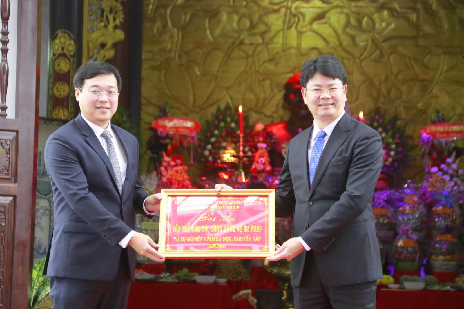 Đồng thời, Thứ trưởng cũng đến thăm, làm việc với Sở Tư pháp tỉnh Đồng Tháp. Qua đó, lắng nghe tâm tư nguyện vọng, kiến nghị của tư pháp địa phương để có giải pháp tháo gỡ, góp phần nâng cao hiệu quả hoạt động, nhiệm vụ chuyên môn.
