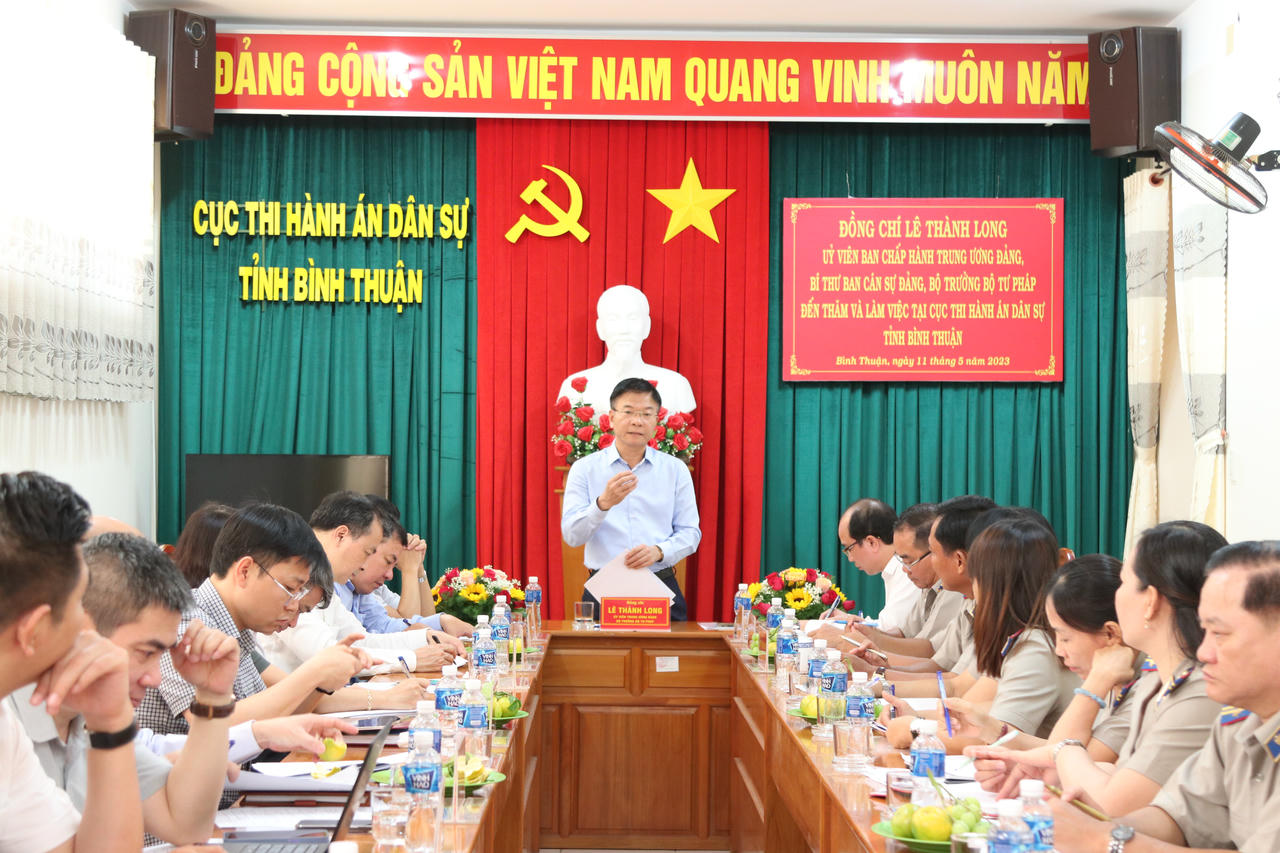 Bộ trưởng Lê Thành Long ghi nhận sự cố gắng và chia sẻ với những thách thức khó khăn mà Cục THADS Bình Thuận đang gặp phải. Theo Bộ trưởng, từ nay đến cuối năm, tập thể ngành THADS Bình Thuận phải tập trung cao độ để có bước chuyển biến. Từ những vụ việc khó thi hành, Bộ trưởng đề nghị Cục phải rà soát kỹ lưỡng các vụ việc, bóc tách chi tiết để tìm nguyên nhân. Đồng thời đánh giá lại mặt chủ quan xem cá nhân, tập thể đã cố gắng hết sức chưa?