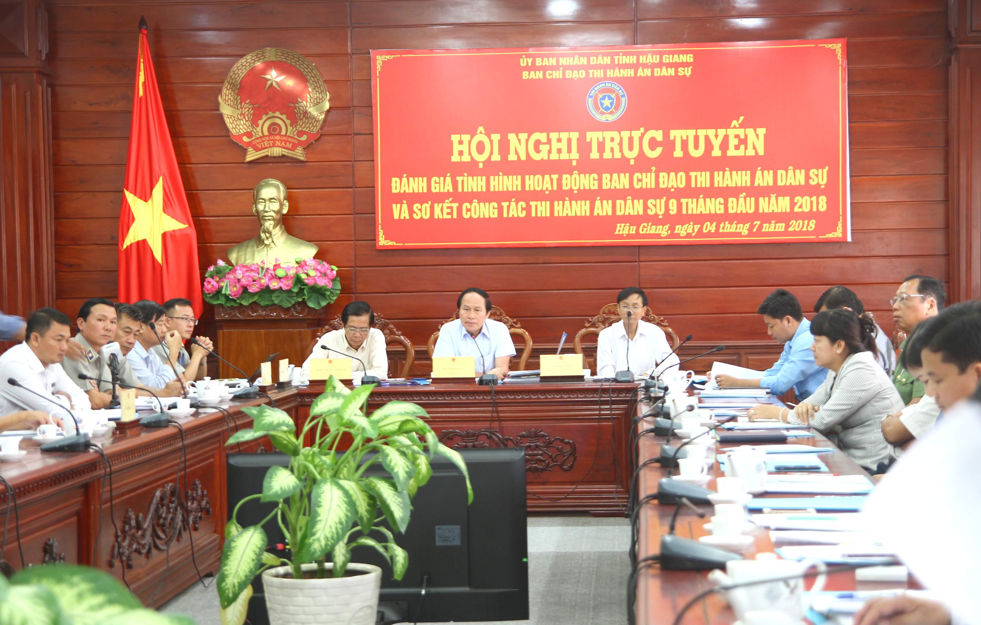 (PLO) - Ngày 4/7, ông Lê Tiến Châu - Chủ tịch UBND tỉnh, Trưởng Ban Chỉ đạo Thi hành án dân sự (THADS) tỉnh Hậu Giang - đã chủ trì Hội nghị trực tuyến “Đánh giá tình hình hoạt động Ban Chỉ đạo THADS và sơ kết công tác THADS 9 tháng đầu năm 2018” với các huyện, thị xã, thành phố trên địa bàn.