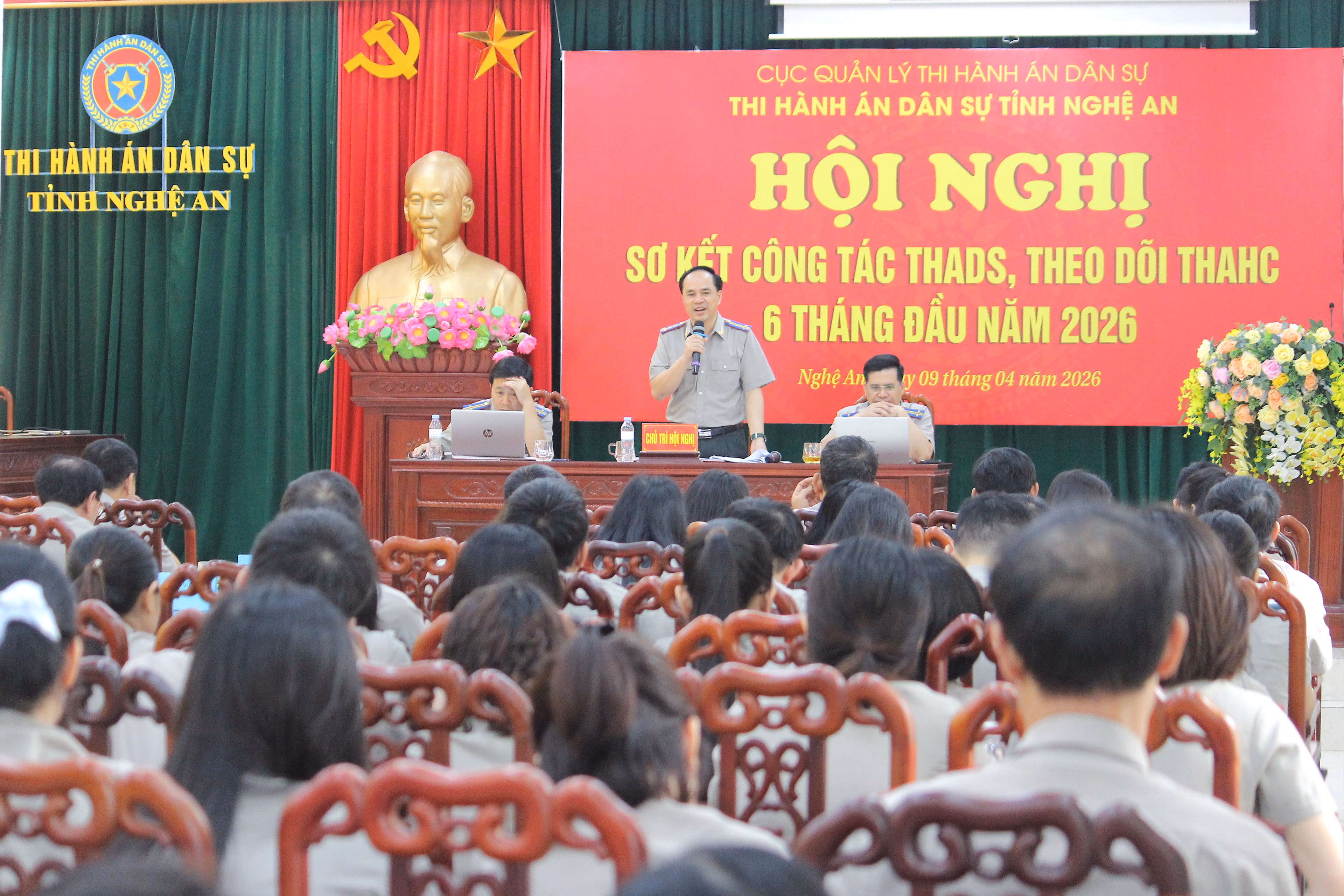 Sáng 9/4, tại Hội nghị sơ kết công tác thi hành án dân sự (THADS), theo dõi thi hành án hành chính (THAHC) 6 tháng đầu năm 2026, THADS tỉnh Nghệ An đánh giá, mặc dù còn nhiều khó khăn, song toàn hệ thống đã nỗ lực triển khai đồng bộ các nhiệm vụ, qua đó đạt được nhiều kết quả quan trọng trên các lĩnh vực.