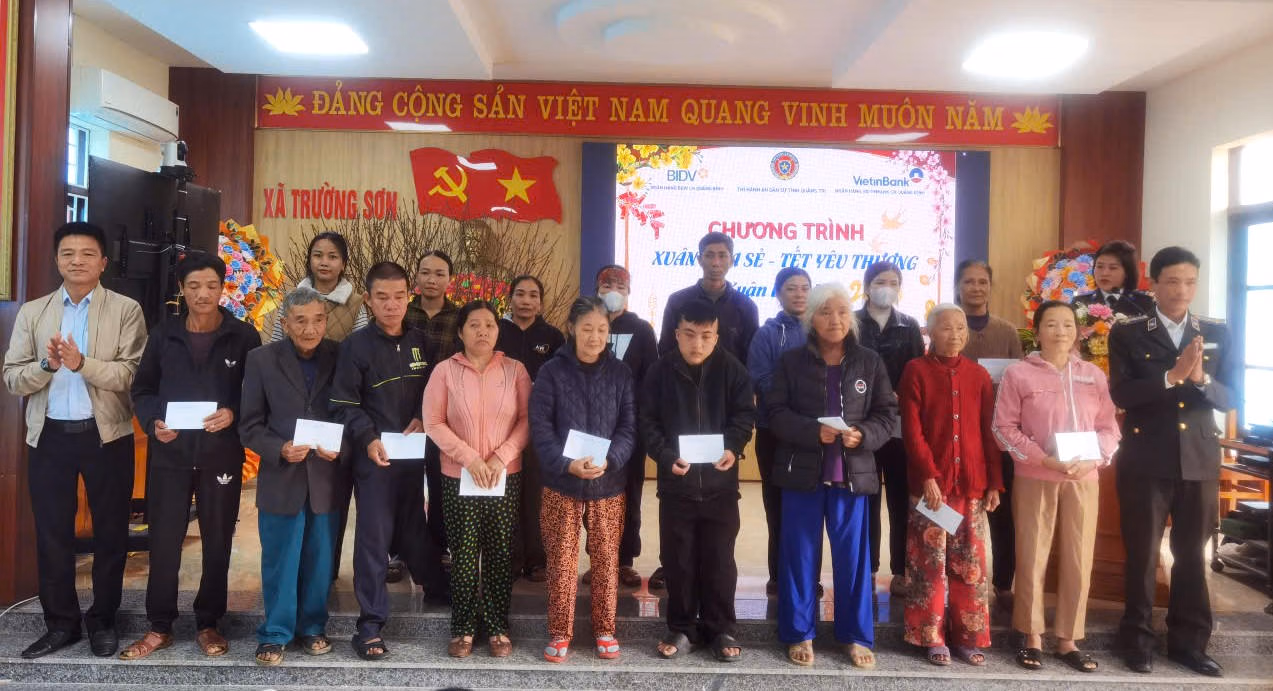 Nhằm chăm lo đời sống Nhân dân vùng đồng bào miền núi, biên giới, Thi hành án dân sự tỉnh Quảng Trị phối hợp với VietinBank và BIDV Chi nhánh Quảng Bình tổ chức chương trình “Xuân chia sẻ - Tết yêu thương” tại xã Trường Sơn.