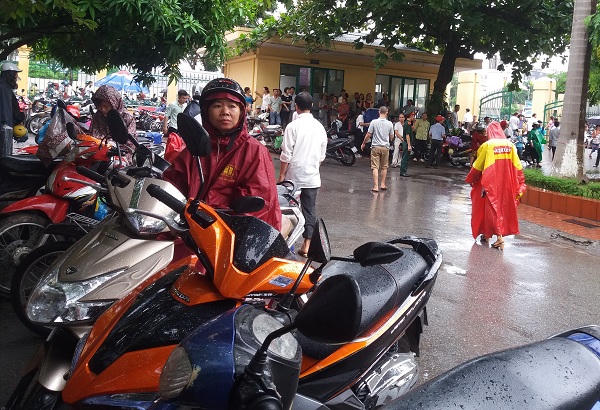 Bà Hòa, một phụ huynh ở Hòa Lạc, Thạch Thất, Hà Nội, cho biết, do nhà ở xa nên hai mẹ con chở nhau bằng xe máy đi từ lúc 5 giờ sáng. Bà cHòa ầu mong mai trời hết mưa để những phụ huynh và thí sinh từ xa đến như bà đi lại không quá vất vả, thí sinh đảm bảo sức khỏe để dự thi.