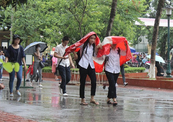 Tuy nhiên, do trời mưa diện rộng ở Thủ đô, nhiều thí sinh tắc đường nên đến muộn. Hơn 8h, tại điểm thi ĐH Thương mại, có không ít thí sinh nháo nhác chạy dưới mưa tìm phòng thi.