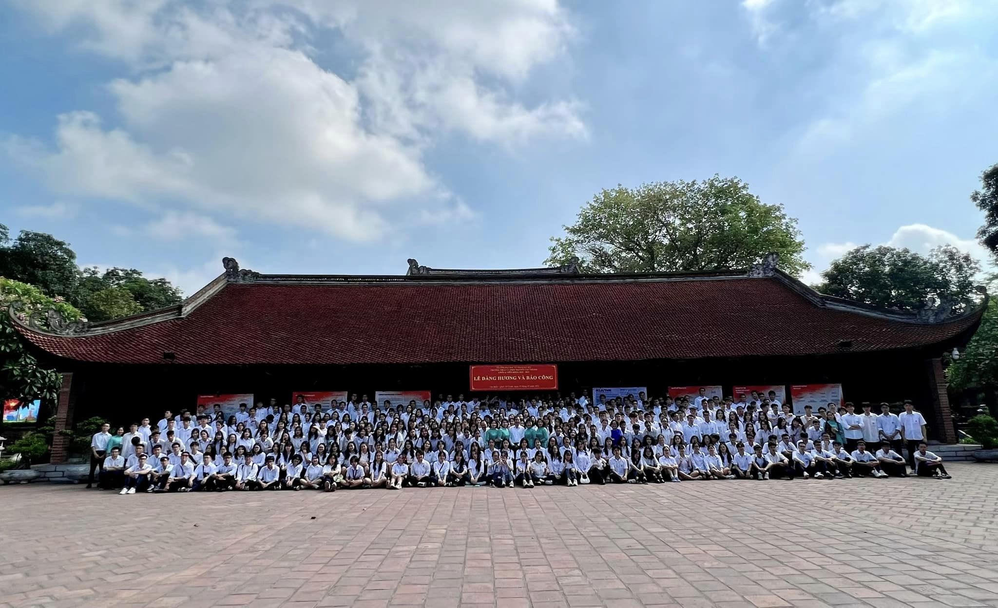 Thầy trò trường THCS &THPT Nguyễn Tất Thành dâng hương báo công tại Văn miếu Quốc tử giám. (Ảnh Lê Xuân Quý) |