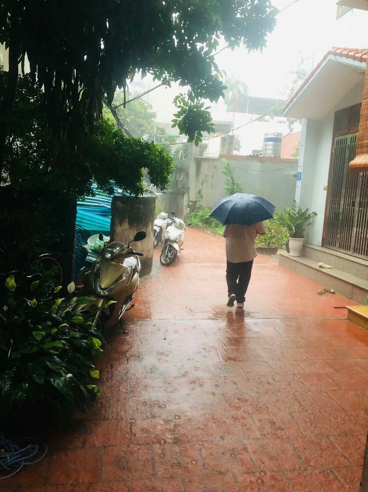 Nhà gần nhưng lo muộn giờ, nam sinh không dám chờ mưa ngớt, vội vã đến điểm thi Cụm 1 Tây Hồ.