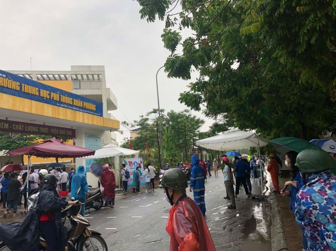 Mưa ngớt dần khi các thí sinh bắt đầu vào phòng thi.